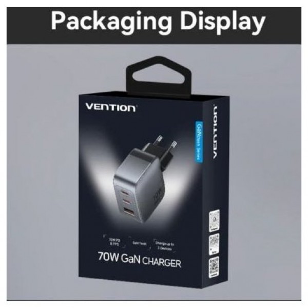 - Nombre: Cargador GaN USB de 3 puertos (C+C+A) (70W/70W/22,5W) enchufe EU gris