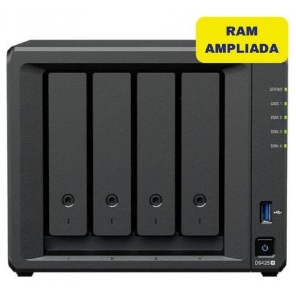 El DS425+ cuenta con redes integradas de 2.5GbE y admite tanto SSD SATA como HDD en bahías internas de 2.5"/3.5", así como unidades M.2 NVMe a través de ranuras M.2 para uso de caché