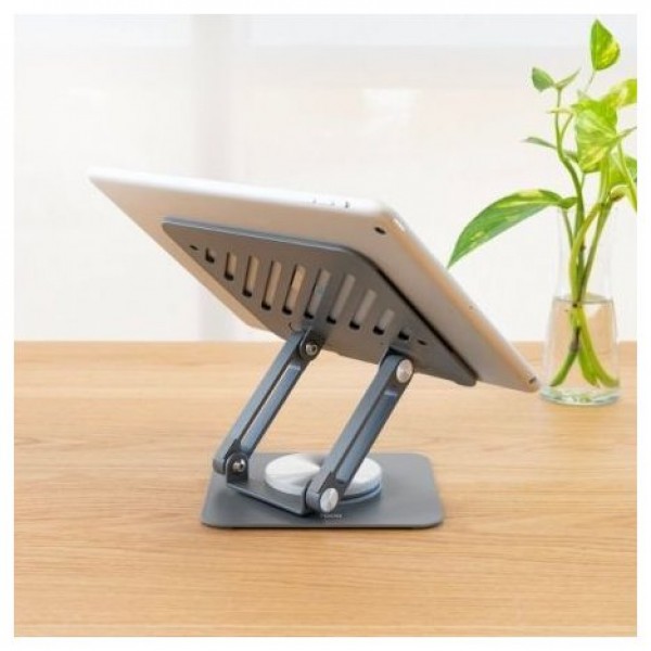 Soporte Elevador con rotación 360° y ajustable, para dispositivos de hasta 13”, Gris Oscuro