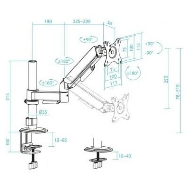 - Peso soportado de pantalla: Mínimo 2 kg. Máximo 9 kg