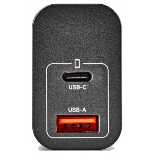 - Cargador GaN de pared con una salida USB-C (PD & PPS) y una salida USB-A QC 3.0 de 20W de potencia máxima.