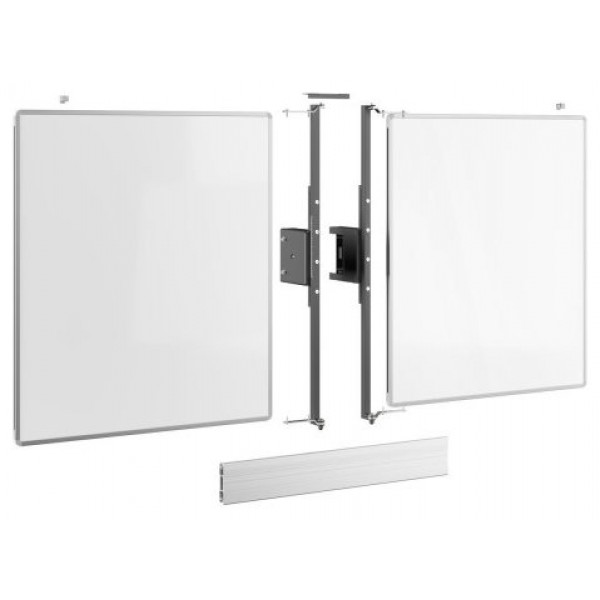 El conjunto de pizarra blanca RISE WB75M es un sistema universal, apto para todo tipo de pantallas (interactivas) de 75". Este accesorio le permite montar una pizarra blanca a la izquierda y a la derecha de su pantalla de 75". Los tableros de acero esmaltado están unidos por arriba y por abajo con una bisagra desarrollada por Vogel"s, que mantiene la fricción y la estabilidad de la escritura incluso después de un uso frecuente. Si con el tiempo la fricción va siendo menor de lo deseado, la bisagra se puede ajustar fácilmente.Este juego es adecuado en combinación con el carro y los soportes de suelo RISE 5xxx y contiene uno o dos contrapesos para mayor estabilidad. Debido al ajuste de altura de 985 mm, estos elevadores requieren un contrapeso para cumplir con los estándares de seguridad.