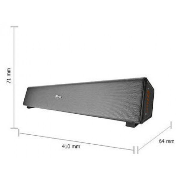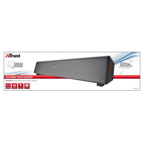 Elegante altavoz horizontal que puede colocarse debajo del monitor. Control táctil sensible y fácil de usar para ajustar el volumen. 4 altavoces integrados con los que se obtiene un sonido estéreo de alta calidad y una salida de potencia de pico de 10 W. Alimentado por USB: no requiere alimentación eléctrica. Conexión para los auriculares. Tamaño del producto (An x Al x Prf): 72 x 420 x 64 mm.