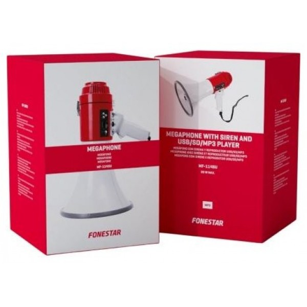 Megáfono con sirena Fonestar MF-600SGU/ 25W/ USB/ SD/ a Batería/ a Pilas/ a 12V CCMegáfono portátil ..