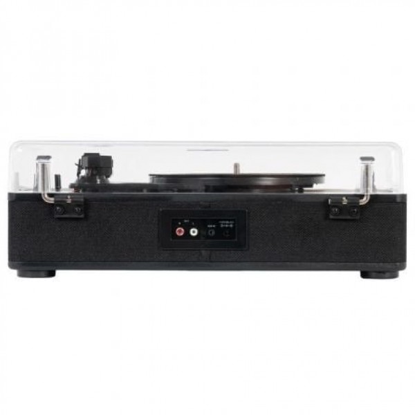 madera mdf recubierta de pvc negro y tela. incorpora cápsula y aguja cerámica.