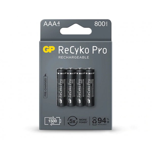 PILA RECARGABLE GP AAA SIN DESCARGA 800mAh (4 UD)