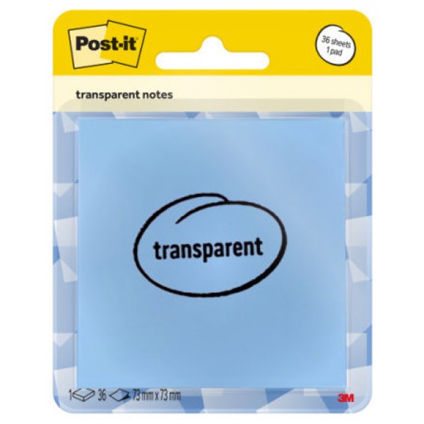 BLISTER 36 HOJAS NOTAS TRANSPARENTES 600-1TRSPB 73X73 MM AZUL PASTEL POST-IT 7100394509