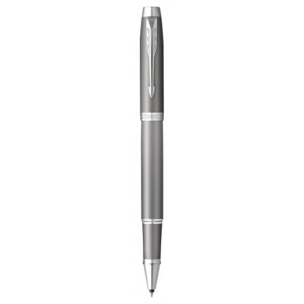 Bolígrafo roller Parker IM Writing Rituals, acabado gris con degradado, adornos cromados, punta fina, tinta negra, estuche de regalo.