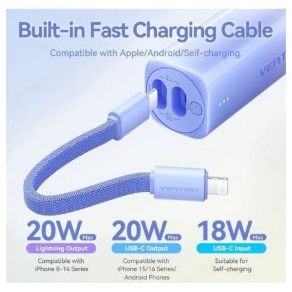 Powerbank 5000mAh Vention FHWL0/ 20W/ AzulPowerbank 5000mAh Vention FHWL0Manténgase cargado con esti..