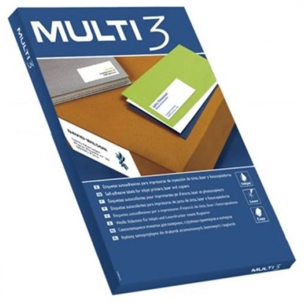 Caja de 100 hojas de etiquetas adhesivas multi3 para impresora Laser, Ink-jet o fotocopiadora.. Etiquetas adhesivas económicas.