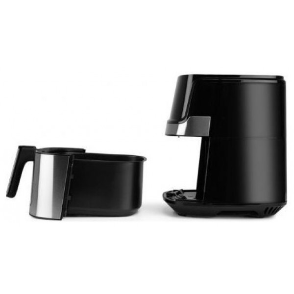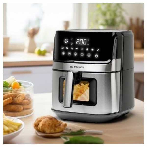 El frontal con detalles de acero inoxidable no solo aporta un toque de elegancia a la cocina, sino que también garantiza durabilidad y resistencia al desgaste. La pantalla LED con control táctil permite un manejo intuitivo y sencillo, haciendo que la operación de la freidora sea tan fácil como tocar un botón. La pantalla muestra claramente el tiempo y la temperatura de cocción, proporcionando un control total sobre el proceso.