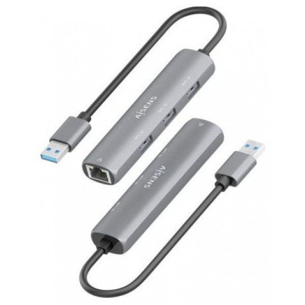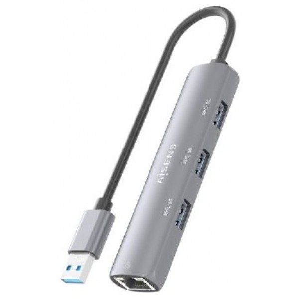 ASUC-4P034-GR – USB3.0 Dock USB-A a Ethernet Gigabit + HUB 3xUSB-A, Gris, 15cm