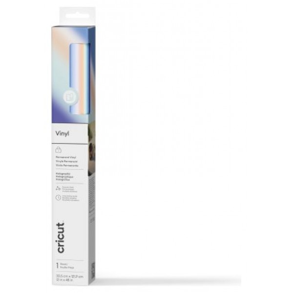 Cricut 2011349. Tipo de producto: Rollo de vinilo de termotransferencia, Color del producto: Azul, Coloración: Holográfico. Ancho: 305 mm, Longitud: 1200 mm. Tipo de embalaje: Envase para colgar