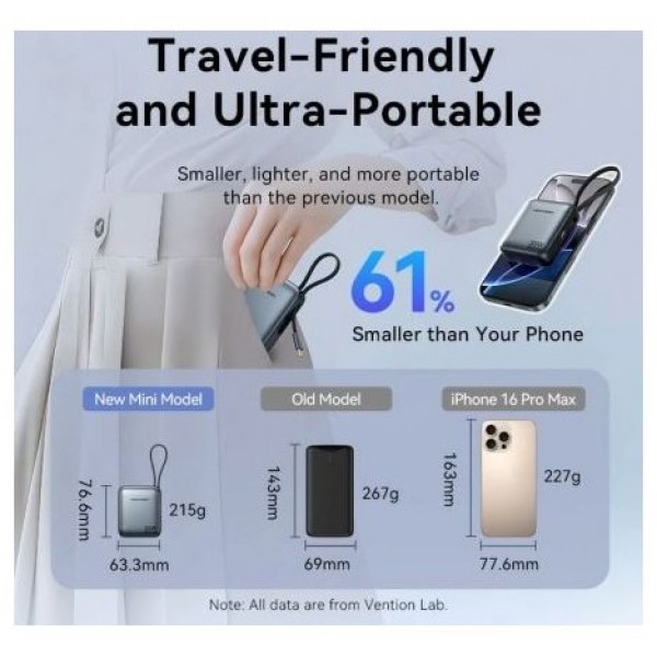 Powerbank 20000mAh Vention FKFH0/ 165W/ Gris/ Incluye Cable USB Tipo-CVention 20000mAh Power Bank 16..