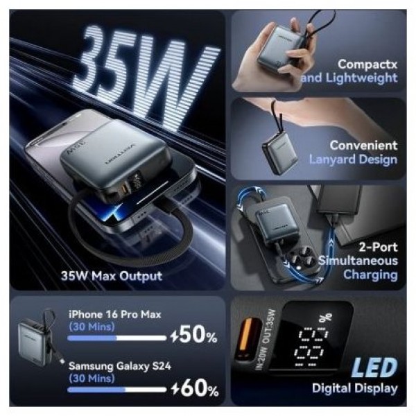 Powerbank 10000mAh Vention FHEH0/ 35W/ Gris/ Incluye Cable USB Tipo-CVention 10000mAh Power Bank 35W..