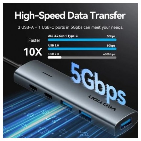 Vention HUB USB-A 3.2 a USB-C 3.2Gen1/ USB3.0x3USB-C 0.15m TGXHB Aluminio