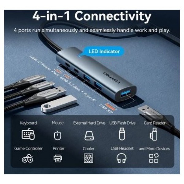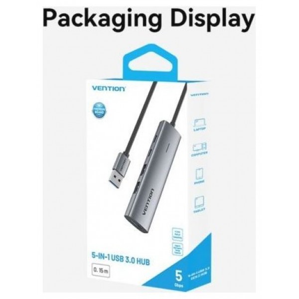 HUB 4 PUERTOS USB 3.0 3xUSB 1xMICRO USB PD GRIS VENTION (Espera 4 dias)