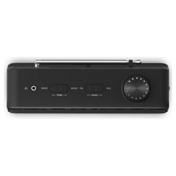Nunca tendrás que buscar el control de volumen en esta radio. Además del gran dial de volumen, la radio dispone de interruptores montados en la parte superior para cambiar entre las señales FM/AM y los modos de sonido. También encontrarás un puerto para auriculares para una escucha privada.