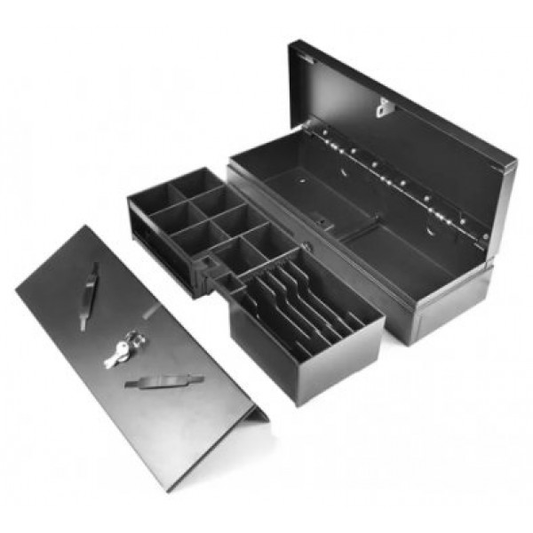 CAJON PORTAMONEDAS MUSTEK 410X415 MM 5 BILL/8 MON APERTURA MANUAL NEGRO