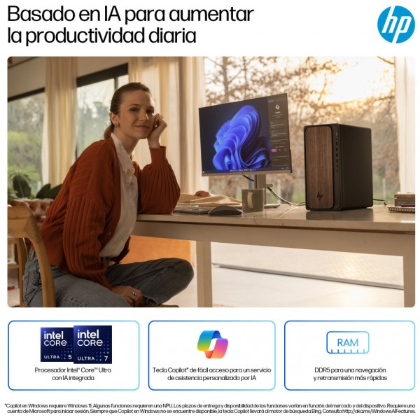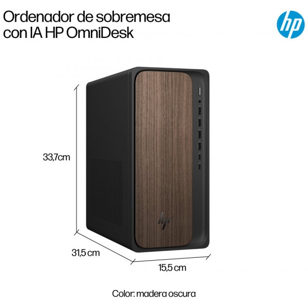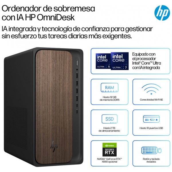 El ordenador de sobremesa con IA HP OmniDesk ofrece una eficiencia y un rendimiento óptimos para las tareas diarias más exigentes. Equipado con el procesador Intel Core™ Ultra[1] y tecnología de IA integrada, se ha configurado para potenciar la productividad diaria con los puertos más recientes, una gran cantidad de almacenamiento y una memoria DDR5 para tiempos de arranque más rápidos.