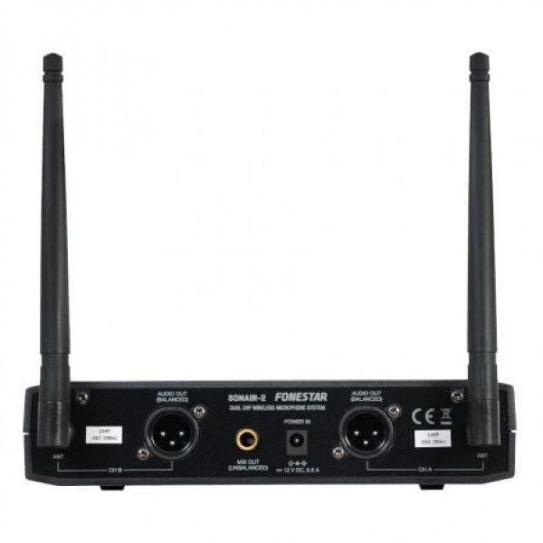 formado por un receptor doble y dos transmisores - un micrófono de mano y uno de petaca. el micrófono inalámbrico de mano tiene cápsula dinámica unidirecciónal que maximiza la captación directa de