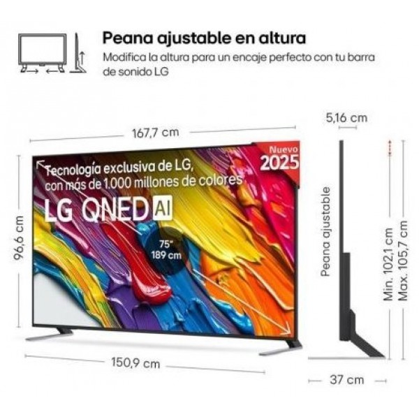 - Más de 1.000 millones de colores, ahora más intensos que nunca con LG QNED, la tecnología exclusiva de LG. Mayor contraste y brillo en la imagen, gracias al análisis inteligente de Dynamic Tone Mapping en 2.040 zonas independientes.