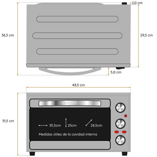 Horno de Sobremesa Grunkel HR-48PROMAX/ 2200W/ Capacidad 48L/ NegroGRUNKEL – Horno eléctrico con con..