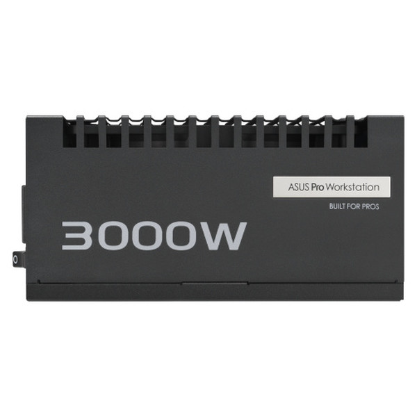 ASUS -PRO-WS-3000P. Potencia total: 3000 W, Voltaje de entrada AC: 220 - 240 V, Corrección del factor de potencia tipo (PFC): Activo. Alimentador de energía para tarjeta madre: 20+4 pin ATX, Longitud del cable de alimentación de la placa base: 61 cm, Longitud del cable de alimentación SATA: 120,400 mm. Utilizar con: PC, Factor de forma de fuente de alimentación (PSU): ATX, Certificación 80 PLUS: 80 PLUS Platinum. Color del producto: Negro, Tipo de enfriamiento: Activo. Ancho: 175 mm, Profundidad: 150 mm, Altura: 86 mm