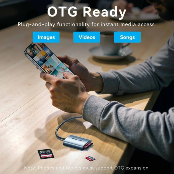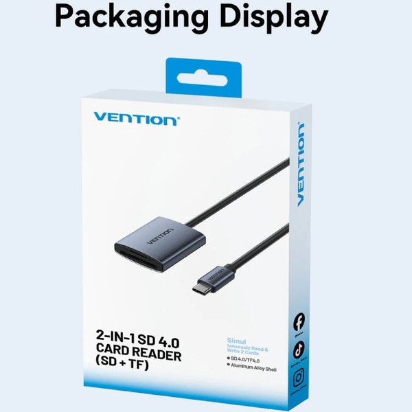 Vention lector de tarjetas dual drive 2en1 USB-C 3.0 (SD/TF) CLIH0 0.15m Aluminio gris