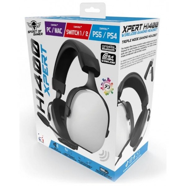 | Caracteristicas | - Plataformas compatibles: Nintendo Switch, PlayStation 4, PlayStation 5, Mac, Nintendo Switch 2, PC - Estandar de audio: estereo, sonido envolvente virtual 7.1, Windows Sonic - Tipo de casco: circumaural - Sensibilidad de casco: 106 dB (+/- 3 dB) - Frecuencia del casco: 20 - 20 KHz - Impedancia del casco: 32 ohmios - Tipo de microfono: desmontable y flexible, omnidireccional, con reduccion de ruido - Sensibilidad del microfono: -42 dB (+/- 3 dB) - Impedancia del microfono: 2 ohmios - Bateria: autonomia 40 horas, recargable 1000 mAh - Distancia de funcionamiento: 10 metros - Conexion: triple modo - Color: blanco/negro - Materiales: almohadillas HP, diadema y base de arco Dimensiones y peso - 18,2 x 9,5 x 21,6 cm - 280 g Contenido - Auriculares XPERT-H1400 - Cables USB y Jack 3,5 mm - Dongle USB doble - Guia de instalacion rapida |