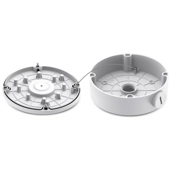 | Características | - Diseño para ocultar cables - Estructura de aluminio resistente al agua - Compatible con cámaras domo, bala y torreta específicas - Apto para montaje en pared o techo, tanto en interiores como en exteriores - Material: Aleación de aluminio Dimensiones y peso - 155,56 × 150 × 51 mm - 416 g Contenido - Caja de conexiones - Accesorios de montaje - Accesorios impermeables |